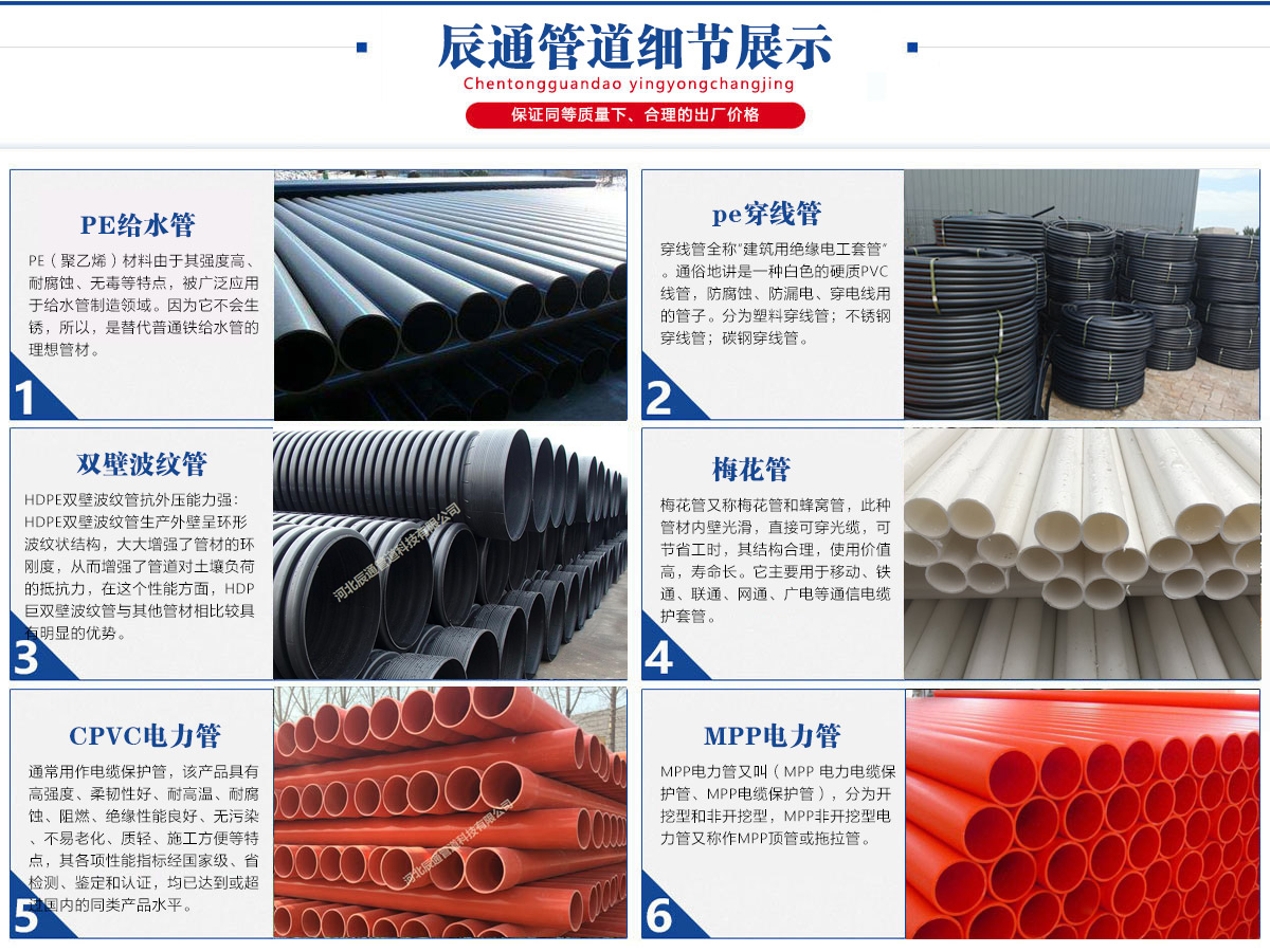 金沙集团1862cc科技有限公司,交通便利,地理位置良好。金沙集团1862cc是一家生产塑料管材的企业,生产设备齐全,生产经验丰富! 金沙集团1862cc科技有限公司生产制造的主要产品品有:PE给水管、PE穿线管、MPP电力管、cpvc电力管、HDPE双壁波纹管、HDPE钢带增强螺旋波纹管、玻璃钢电缆保护管、PVC农田灌溉管、HDPE虹吸排水管等各种管材,品种齐全,价格公道。 金沙集团1862cc科技有限公司以坚守诚信、追求卓越为宗旨,以市场需求为导向,科技创新为后盾,广交四方朋友,共步昌达之路。...
